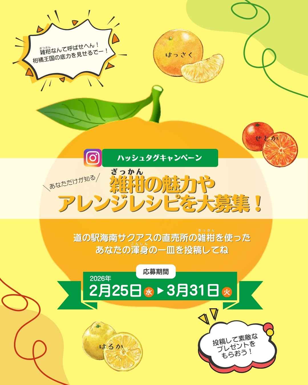 「フルーツ王国和歌山県」、海南市下津町はみかんをはじめとした柑橘類が特産品です。他にもまりひめ(いちご)、キウイ、いちじく、桃など季節を通じて色々なフルーツが穫れます。フルーツの他にも新鮮なお野菜やハチミツ、牛乳、地酒まで。