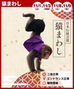 可愛らしい🐵お猿さんが、さまざまなパフォーマンスを披露する、楽しいショーを