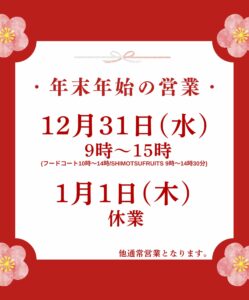🗓12月27日(土)~1月4日(日)※1月1日は休業です。
