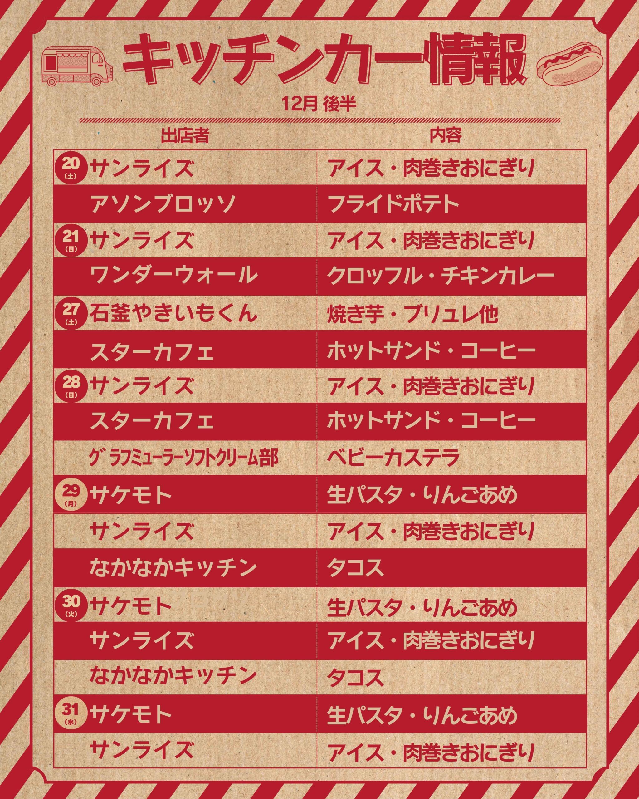 🗓️12月20日(土)・21日(日)・27日(土)・28(日)・29(月)