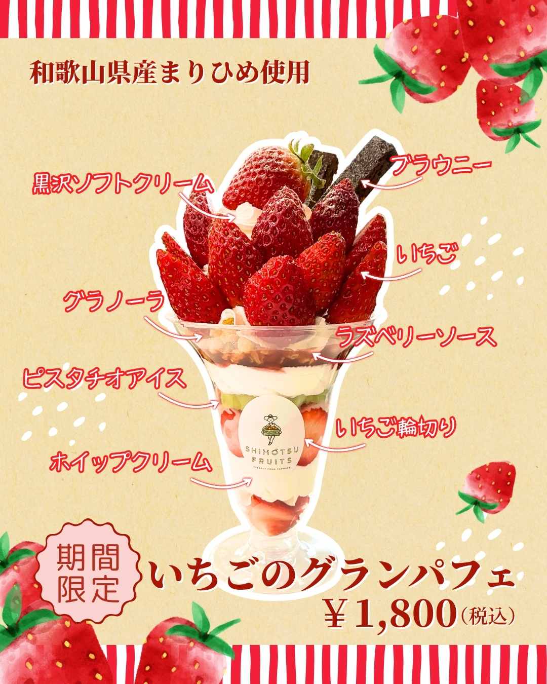 🍓いちごのグランパフェがSHIMOTSU FRUITSより販売中!